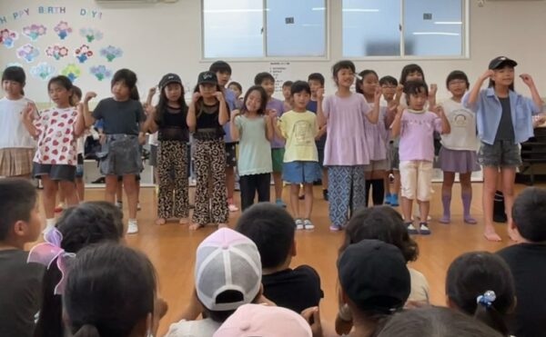 令和7年8月 歌やダンスなど、自分の特技を発表しました。 全力な姿勢と成長が見られました。